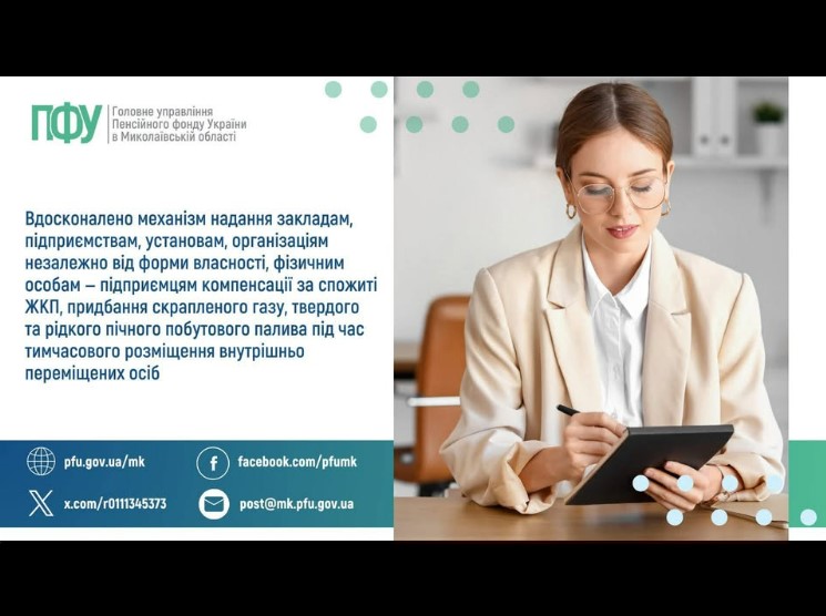 -у разі розміщення внутрішньо переміщених осіб, строк проживання яких не перевищує 30 днів, запроваджено подання щомісяця до 20 числа заяви про отримання компенсації за спожиті ЖКП, придбання скрапленого газу, твердого та рідкого пічного побутового палива під час безоплатного розміщення внутрішньо переміщених осіб в електронній формі через вебпортал електронних послуг Пенсійного фонду України;