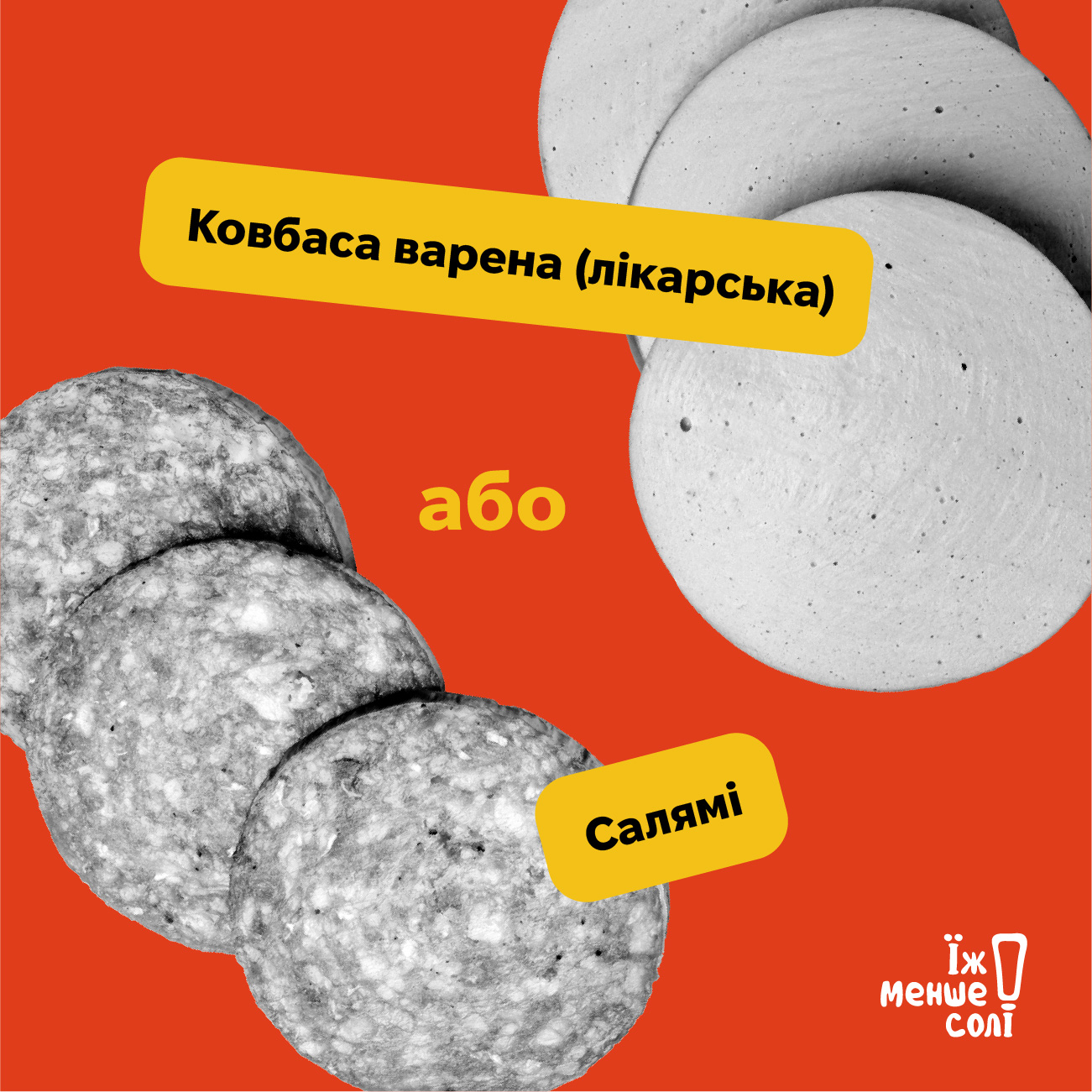 Продукти: Ковбаса варена (лікарська) VS Салямі, Піца VS Шаурма, Сир фета VS Крем-сир